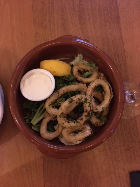 The food menu was fairly typical of what’s on offer in the area, focussing heavily on Moroccan and Lebanese dishes with a selection of hot and cold mezze and grilled meats, and  a handful of tagines to mix things up a little. Calamari, always a good test of the kitchen’s skills, (£4.50) and Ful Moukala, one of Mr PLC’s recommendations for the evening, (also £4.50) were ordered and we took some time to enjoy the drinks whilst we awaited their arrival.